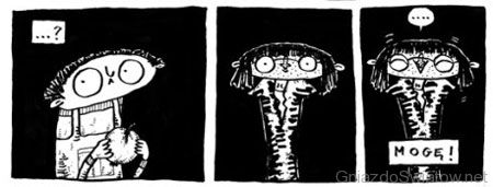 Bardzo przypadła mi także do gustu Garbata (druga historia Świdzińskiego) – trochę melancholijna, bardzo nastrojowa i ciepła historia o dzieciństwie, oraz Cukierkowa Lawiracja Gary’ego Glue – oparty w zasadzie tylko na słownej puncie, ale zgrabnie zrealizowany i ciekawie narysowany szorcik.
