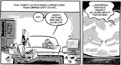 Komiks to dziwny, zadziwiający, niezwykły. To, co napiszę teraz, będzie dziwne, ale napiszę to. Ci z was, którzy nie są rodzicami, nie załapią połowy. Być może nie odrzuci was, jak pewnego czytelnika od mojego wpisu o baloniku, albo nie odłożycie komiksu, jak moja koleżanka z pracy, która nie zmęczyła żartobliwej książki o tej tematyce. Ale stracicie część zabawy, jeśli nie wiecie, jak to jest wstawać co dwie godziny co noc, przez kwartał; i jeszcze dwóch tysięcy innych rzeczy nie doświadczyliście.