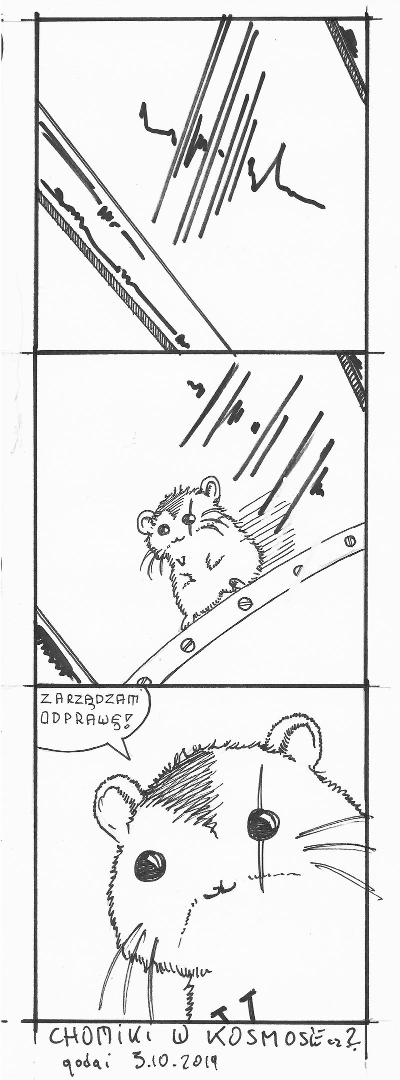 To nie jest pomysł całkiem od czapy – mam na myśli chomiki. Zuza chodziła za mną od dawna i nalegała, żebym zrobił komiks o chomikach. A ponieważ lubię kosmos i mam doświadczenie w robieniu komiksów o kosmosie – no to proste, chomiki w kosmosie.