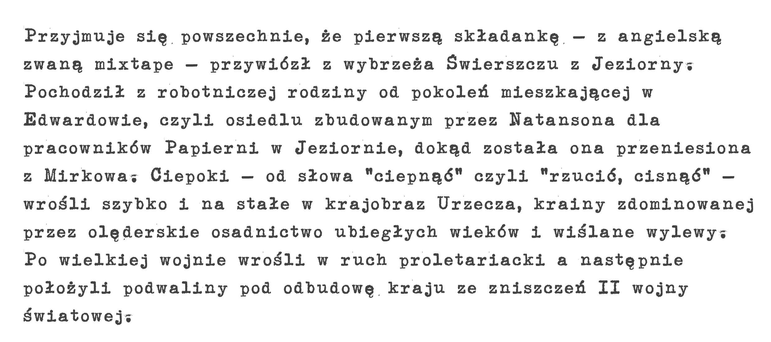 Zainspirowany ciężką (i żmudną) pracą Młodego nad zinem „Abażur” postanowiłem stworzyć czcionkę maszynową (jakby mało takich było), używając mojej starej wiernej, nadal sprawnej maszyny do pisania Erika, która była już antykiem, kiedy dostałem ją w 1994 roku od rodziców.